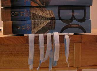- Headbanding: a strip of material between a book's spine and the pages. It usually protrudes slightly above the top edge of the spine.