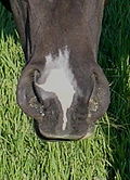 - A blaze is a broad strip that runs down the horse's face. It does not extend past the eyes, and it is wider than a stripe.