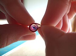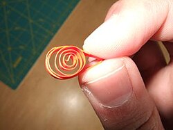 | + | Image:Paper quilling 4.jpg|4. Now, slip the tight circle off the quilling wand and... voila!! You have made a tight circle. | ||