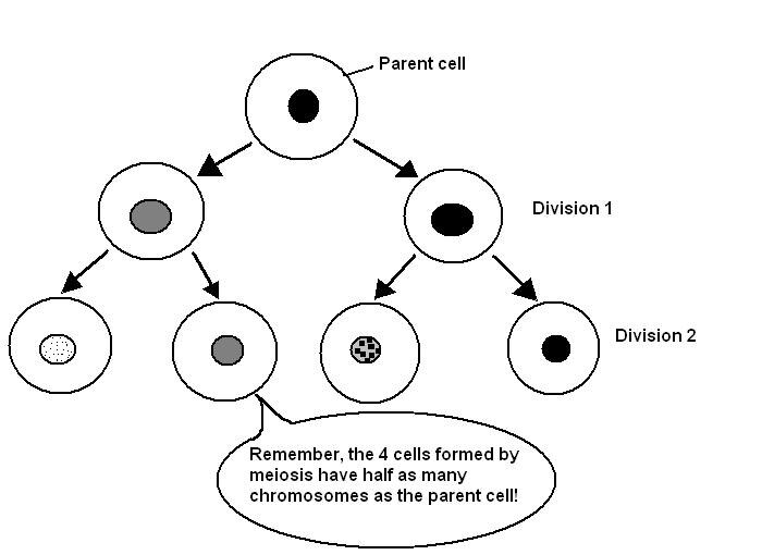 The Process of meiosis is actually split into two processes, meiosis I and meiosis II, each of which have a prophase, metaphase, anaphase, and telophase. To see an illustration of meiosis, click on the diagram to enlarge.