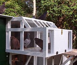 Houses for pigeons are generally called lofts. Pigeon houses are also sometimes referred to as "coops" although the word seems to have originally applied to the breeding pens inside the housing. There are as many different kinds of enclosures used to house pigeons in as there are pigeon fanciers. There are no real constraints on the design of housing for pigeons but there are some things that most fanciers find desirable.