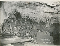 The Klondike Gold Rush, sometimes referred to as the Yukon Gold Rush or Alaska Gold Rush, was a frenzy of gold rush immigration to and for gold prospecting, along the Klondike River near Dawson City, Yukon, Canada after gold was discovered there in the late 19th century. In total, about 12.5 million ounces of gold (about 20.12m3) have been taken from the Klondike area in the century since its discovery.