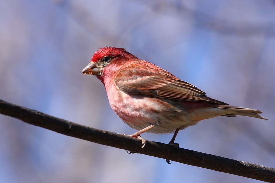 English: Purple Finch (Carpodacus purpureus) male, Cap Tourmente National Wildlife Area, Quebec, Canada.