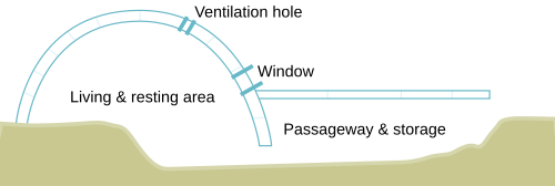 In any of these structures, it is important to make the resting area higher than the floor. This is because cold air sinks, so the coldest place inside a snow shelter will be on the floor.